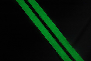 The luminous zipper tapes produced by our company are currently available in white, bleached, light gray, light yellow, medium yellow, medium green, fluorescent aqua, fluorescent yellow, golden pink orange, pink, rose red, light blue, and sky blue. The light emitted includes green light, purple light, orange light, and blue light.