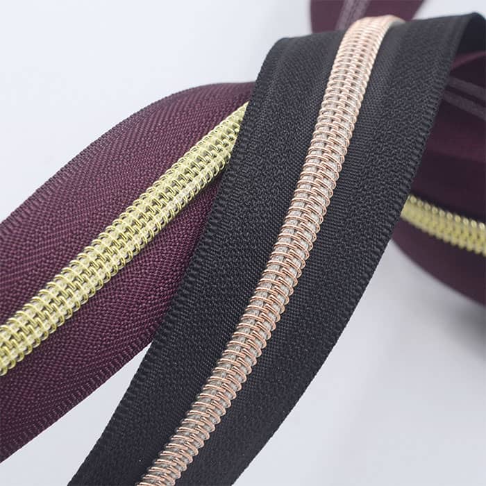 This zipper is made of high-quality nylon material, with a silver/gold teeth design with electroplating texture, which perfectly combines lightness, softness, and luxurious luster, and takes into account practical performance and fashionable beauty. With its excellent quality and unique appearance, the nylon zipper is widely used in high-end products such as fashion clothing, luggage, and shoes.